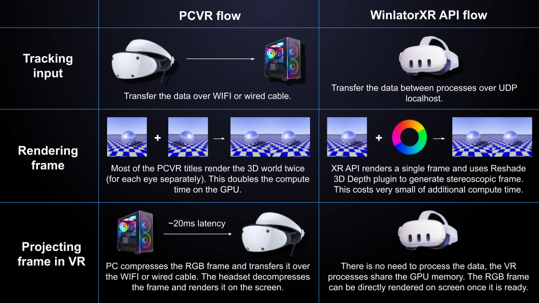 The major difference between PCVR and WinlatorXR API